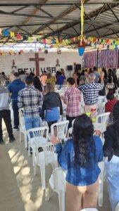 No dia 21 de julho, a cidade de Jaboticatubas, em Minas Gerais, foi palco do animado Arraiá Beneficente da Reviver. O evento, que atraiu mais de 250 pessoas, foi realizado em comemoração aos 27 anos da Comunidade Terapêutica Reviver e começou com uma emocionante Santa Missa, que reuniu os acolhidos, familiares e público externo em um momento de fé e celebração. As festividades continuaram com uma série de atividades típicas das festas juninas, que encantaram pessoas de todas as idades.