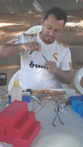 Outra ação de destaque foi a presença de acolhidos que, acompanhados pelo coordenador de oficinas da CT, Joaquim José, ensinaram aos presentes a fazerem um terço utilizando madeira e sementes locais. Confira os registros.
