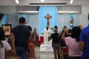 A Comunidade Católica Reviver promoveu, no último domingo (19), o 1° Encontro de Cura e Libertação para Crianças de 2024, que teve como objetivo evangelizar as famílias. Mais de 70 crianças, de 0 à 12 anos, e seus familiares, participaram do evento, que contou com oração do Santo Terço, louvor e animação, pregação, momento de ensino com os pais, evangelização com as crianças, contação de história, ciclo carismático e oração de cura e libertação para a criança com a família, realizada pelo fundador da Reviver, David Arão Siqueira.